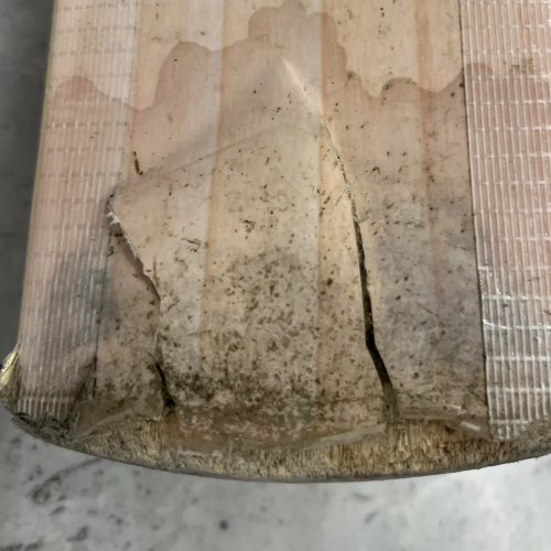 If you are a 'bat tapper,' try to limit this, don't tap too hard, and AVOID if the wicket is wet. The toe of a cricket bat is a very vulnerable area, and tapping can cause severe damage. Tapping against the wicket when taking guard compresses fibres which then open out, leading to splits, greater absorption of moisture, de-lamination of the face, and irreparable damage.